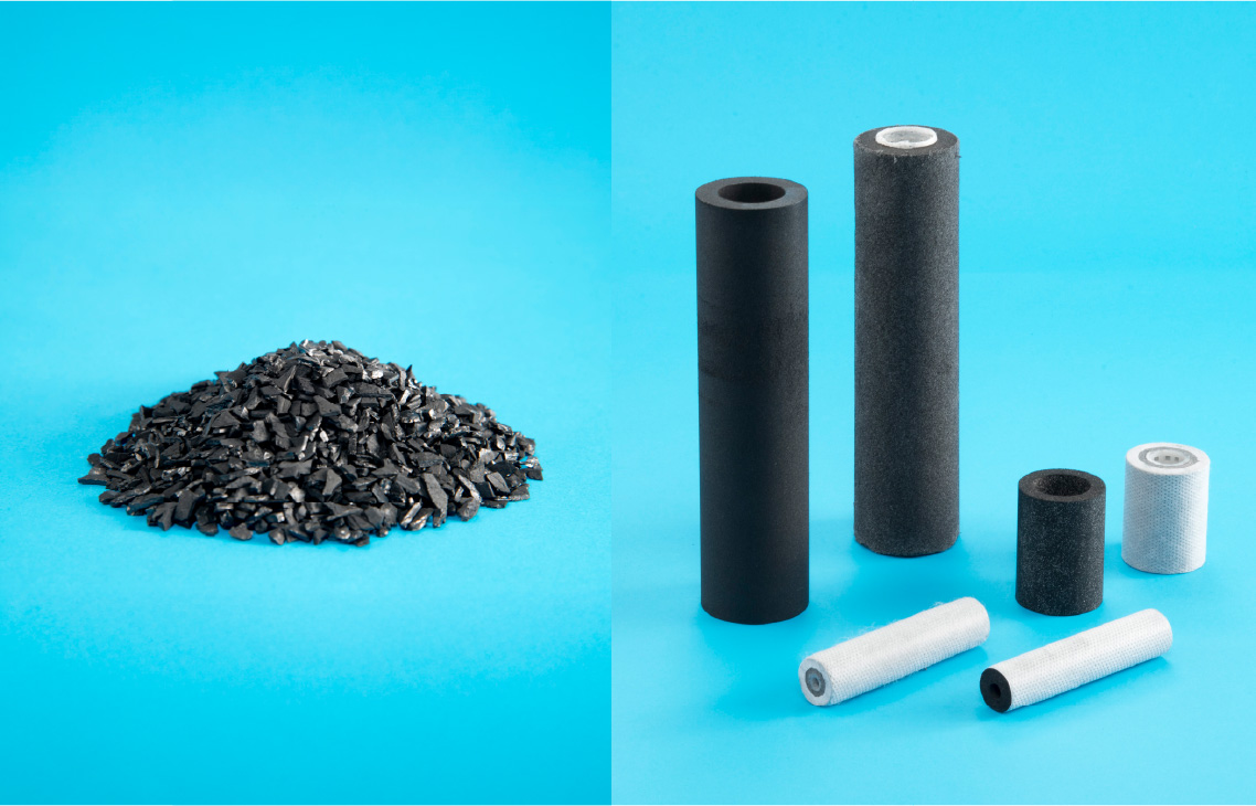 繊維状活性炭を用いた浄水器フィルターの生産開始。